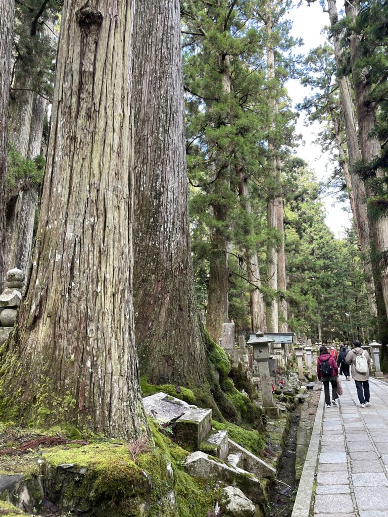 奥の院は2キロの道のりを歩きます。ちょっと前に低山を歩いたのもあったり、動いていたのでちょっと捻挫した足に違和感はあったのですが、、、ゆっくり歩けば行けるし空海さんが連れて行ってくれると信じているので、、/